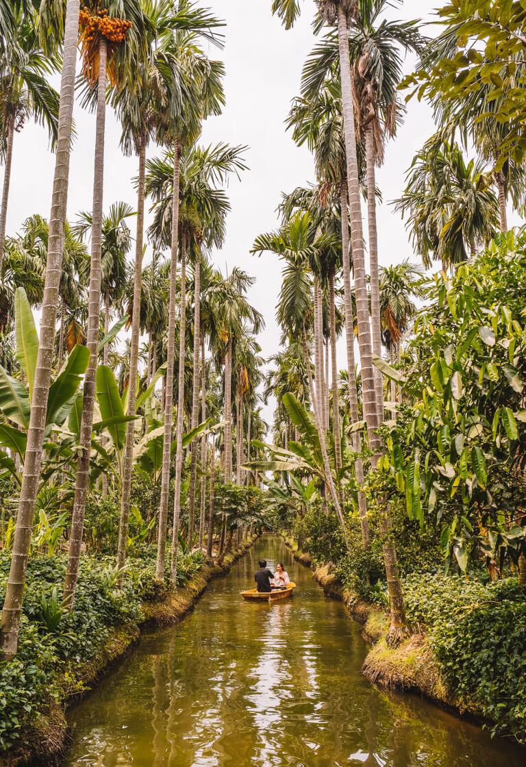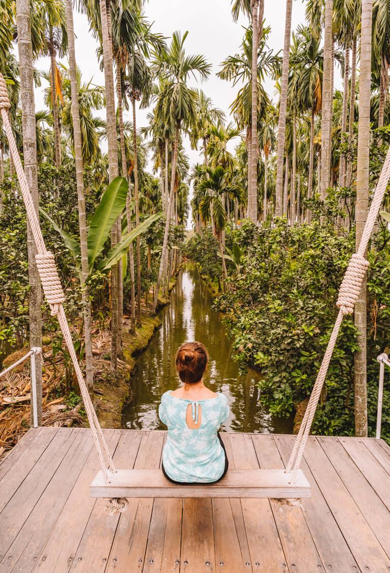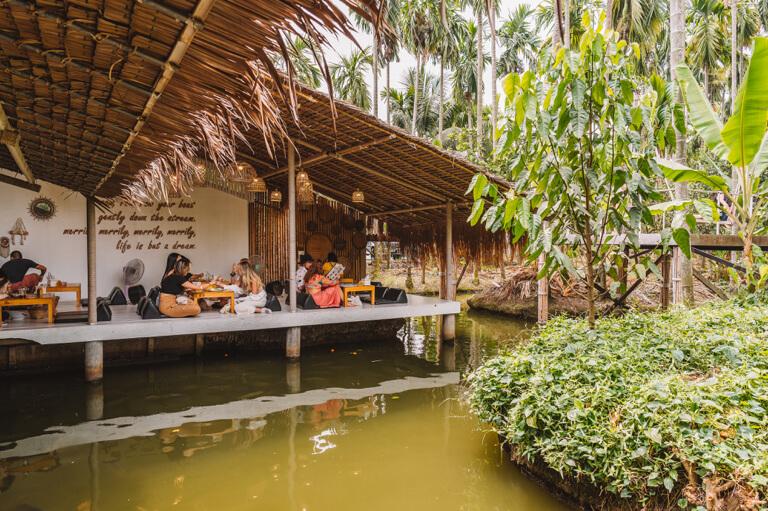 The location is very unusual and really picturesque, directly on a network of narrow rivers in the middle of a coconut plantation, on which you can travel in small boats. The tables are also right on the water, which makes for a great tropical atmosphere. Swings and various platforms provide a nice setting for souvenir photos. The mango-passion fruit smoothie is very, very tasty!