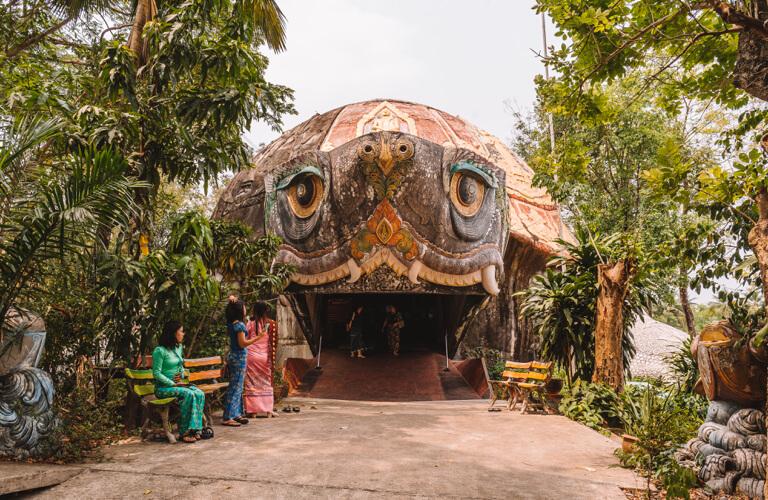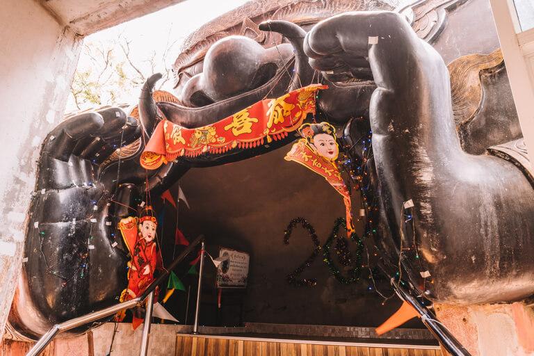 By the way, the Dragon Temple is not the only very special temple in the complex with an unusual shape. Right next door is another Buddhist house of faith, this time in the shape of a giant turtle. Here, too, you can enter the sacred entrails of the animal through the wide-open maw. I admit, you feel a bit like you're in Disneyland, but in a pleasantly surprising way.