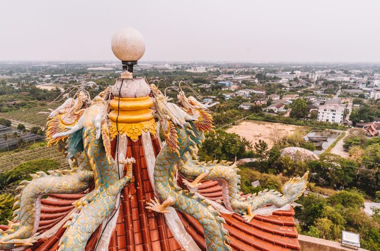 On the roof of the Dragon Temple you have a beautiful panoramic view of Nakhon Pathom province and the other temples in the complex!