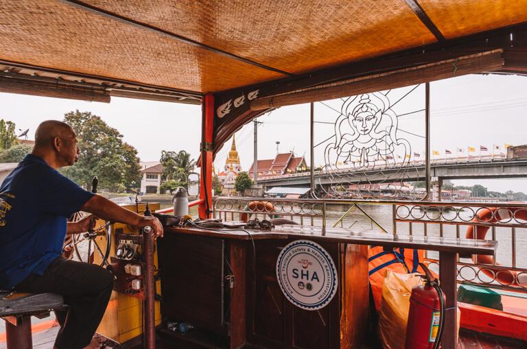 After strolling along the colourful market stalls, the excursion boat is already waiting for you. Amidst loudly chattering Thai families who have stocked up on delicious smelling food for the one-hour tour on the Tha Chin River, you enjoy the lovely river landscape that slowly passes you by.