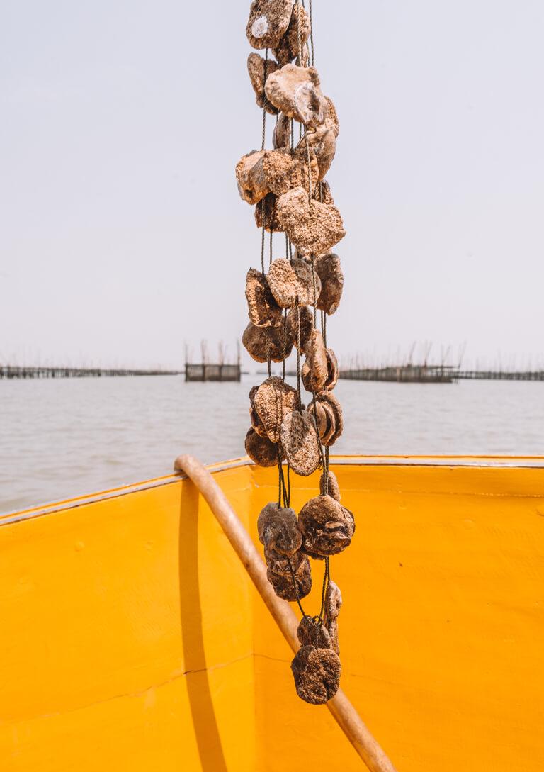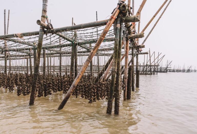 After the monkey spectacle, a somewhat quieter boat trip is on the agenda, namely through the surreally beautiful landscape of a huge oyster and cockle farm!