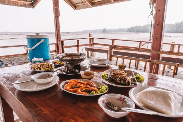 A real highlight is the incredibly delicious food served in just such a stilt house. Freshly caught fish prepared on the spot, fried rice with chicken and seafood, crispy salad and sweet ripe fruit for dessert - a trip really couldn't end more perfectly!
